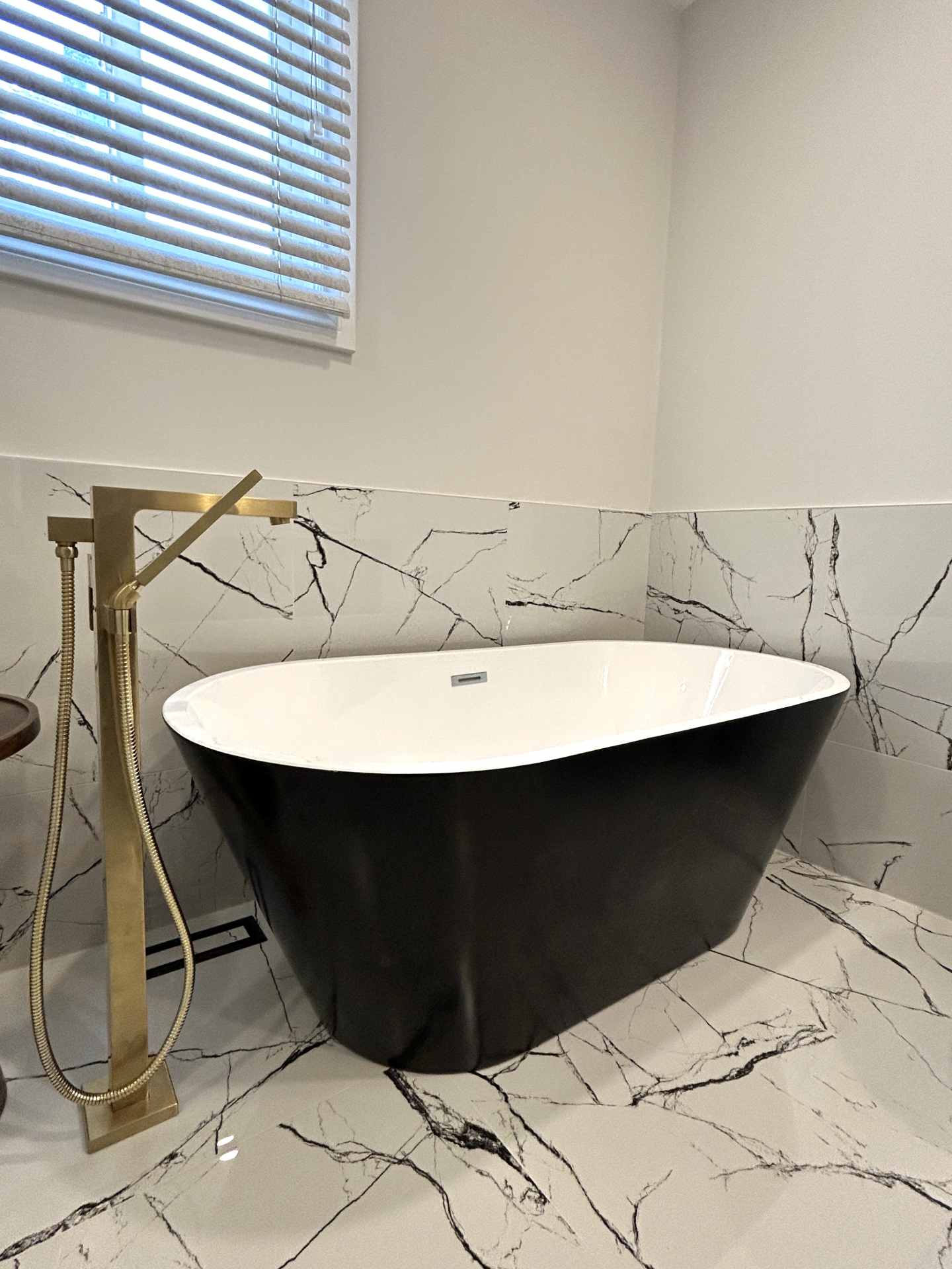 The existing bathroom had a traditional alcove bathtub and a separate shower that made the space feel segmented and inefficient. A single vanity limited storage and symmetry, while the overall design lacked a cohesive style. The homeowner wanted something bold yet timeless - a bathroom that felt elevated without relying on excessive finishes or trends.