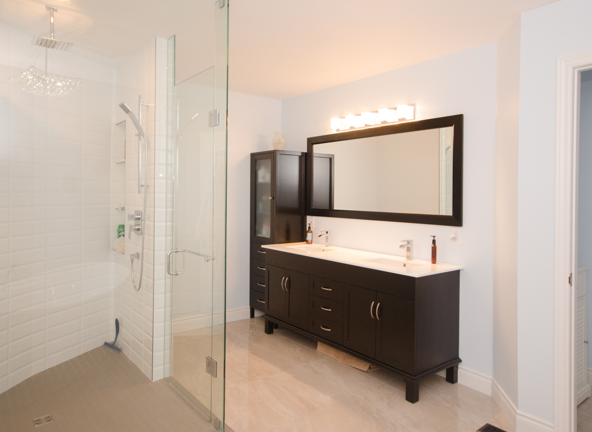 This ensuite has everything that one can wish for. Spacious, double-size shower with a large wall integrated niche. Ceiling-mount shower head for a unique appearance and ease of use.